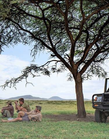Der Tarangire-Fluss und der Ngorongoro-Krater sind ideale Orte für Big-Five-Sichtungen. Bei Morgensafaris zeigen sich Spitzmaulnashörner, in der Serengeti ruhen Leoparden in Akazien. Die Safari erfolgt im Geländewagen.