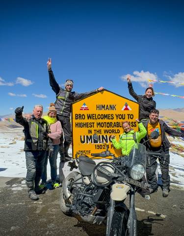 764km auf Royal Enfield 350cc von Kathmandus Tälern nach Muktinath. Die Route führt durch die Kali Gandaki Schlucht, Jomsoms windgeprägte Landschaften und über Hochgebirgspässe mit Blick auf Annapurna und Dhaulagiri.