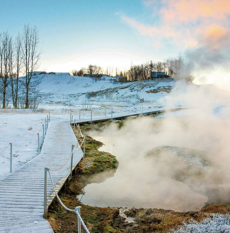 Von Reykjavik aus starten Ausflüge zum Thingvellir Nationalpark und zum Geysir Strokkur. Das Hotel Cabin oder Hotel Klettur dienen als Basis für Nordlicht-Beobachtungen von September bis Oktober.