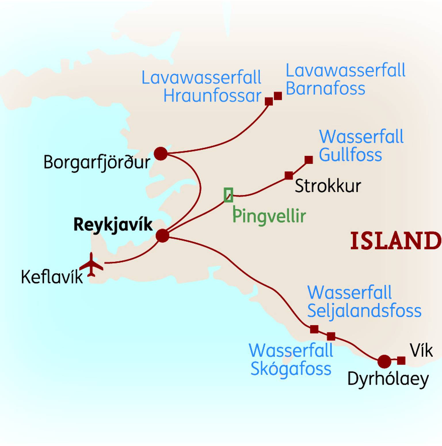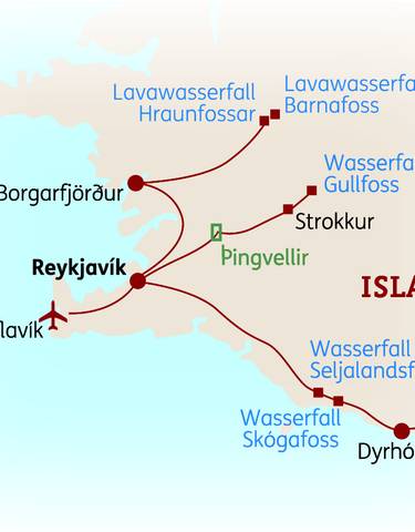 Reisedauer 9 Tage Destinationen Keflavik, Reykjavik, Hveragerdi, Geysir, Gullfoss, Seljaland, Skogafoss, Vík í Mýrdal, Kirkjubaejarklaustur, SkaftafellAlle Reiseziele ansehen Alter Alter 8+ Sprache Nur: Englisch Reiseveranstalter Iceland Travel Ab