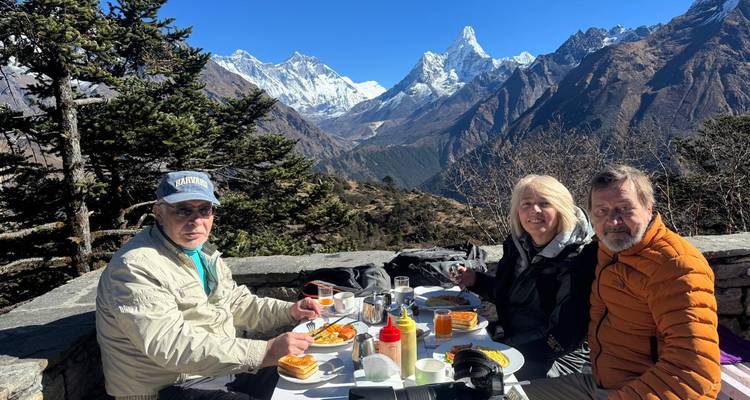 Was für ein unglaubliches Abenteuer! Wir wussten nicht, was uns erwartet, aber es wurde für alles gesorgt. Herr Lalit (unser Führer) und Herr Nambraj (unser Träger) waren sachkundig und haben sich hervorragend um uns gekümmert. Wir sahen Affen und Yaks, während wir durch den Rhododendronwald, durch das Langtang-Tal nach Kyangen wanderten. Das Wetter war jeden Tag perfekt und Mr. Lalit brachte uns zu Teehäusern, in denen wir am Ende eines jeden Tages heiß duschen konnten. Als wir den Gipfel des Kyanjing Ri erreichten, bat mich mein Partner (jetzt Verlobter), ihn zu heiraten. Herr Lalit holte weiße Tücher für uns beide, gab uns Obst und einen nepalesischen Trausegen. Nachdem wir in die Stadt zurückgekehrt waren, ließen wir unsere Reise bei einem traditionellen Abendessen im Kulturzentrum ausklingen. Wir hätten uns keine bessere Erfahrung wünschen können.