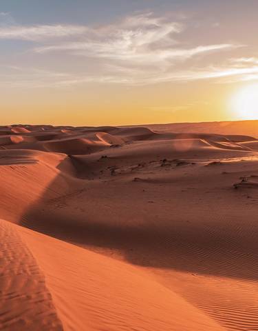 Diese Route zu 8 Orten zwischen der Küstenstadt Muscat und dem bergigen Jebel Shams verbindet alte Traditionen mit Naturwundern. Höhepunkte sind Wadi Ghuls dramatische Schlucht und die Übernachtung in den Wahiba Sands. Ab 425 € pro Tag.