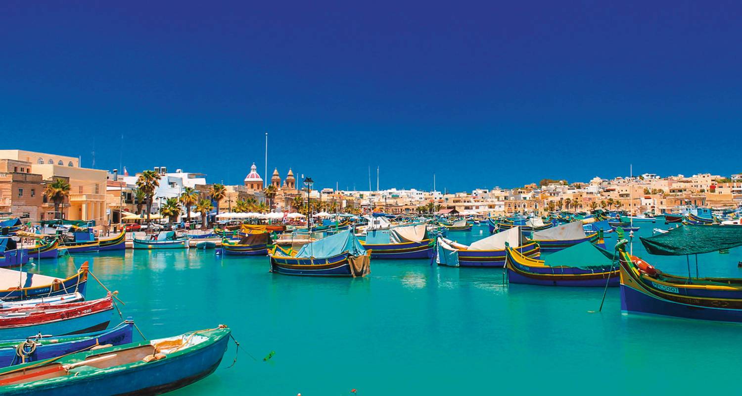 4-Sterne Hotels auf Malta mit Einzelzimmern für Kleingruppen. Traditionelle Mittagessen in Marsaxlokk, Besuch der Johannes-Kathedrale und Mdina-Touren. Bootsfahrten zur Blauen Grotte ergänzen die geselligen Erlebnisse.