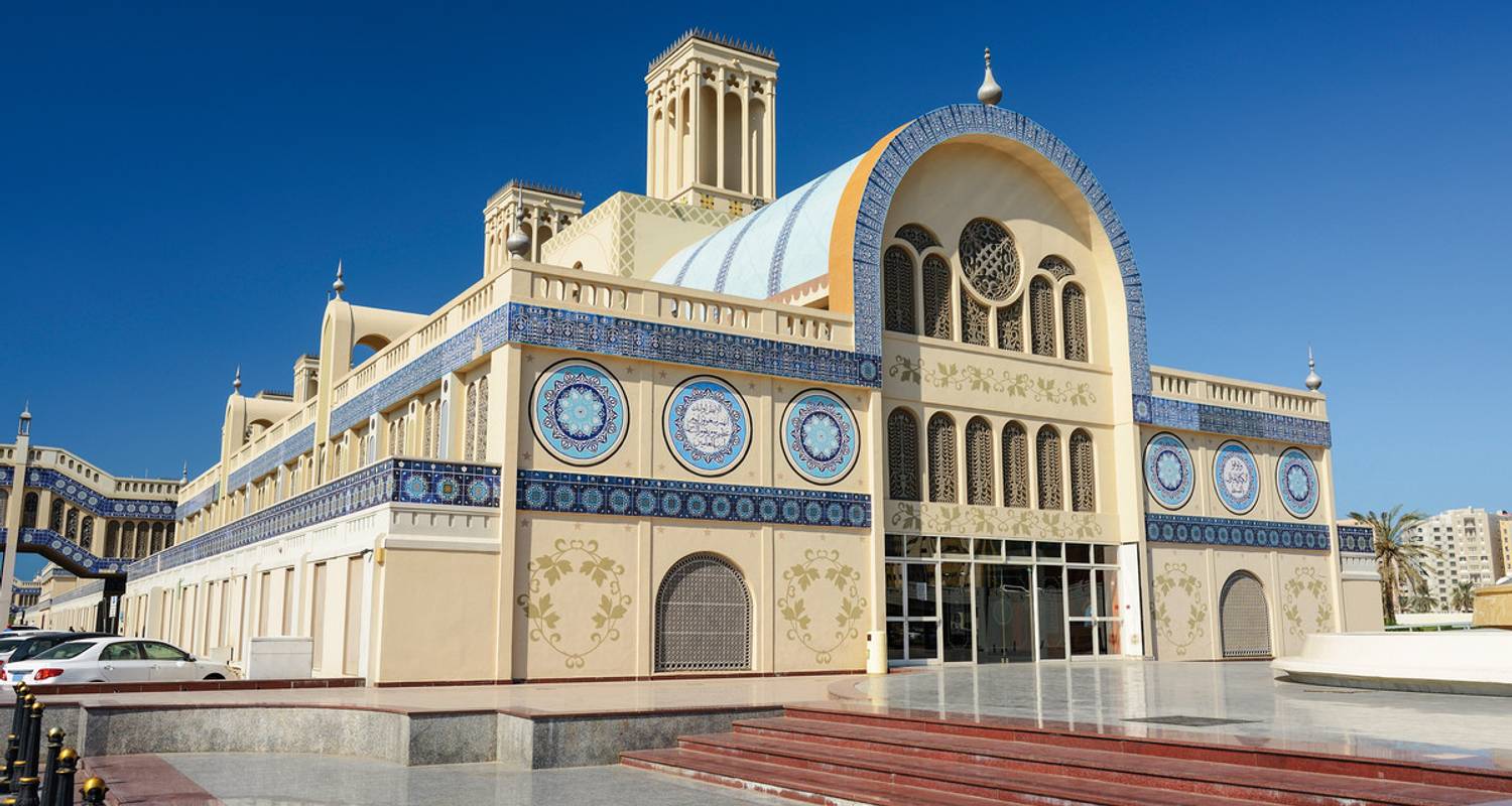 Kulturelles Eintauchen mit deutschsprachiger Reiseleitung im Al Shindagha Museum, Abu Dhabis Louvre und Sharjahs Blue Souk. Alleinreisende kommen bei den inkludierten Abendessen in den Hotels Four Points Sheraton und Holiday Inn Abu Dhabi zusammen.