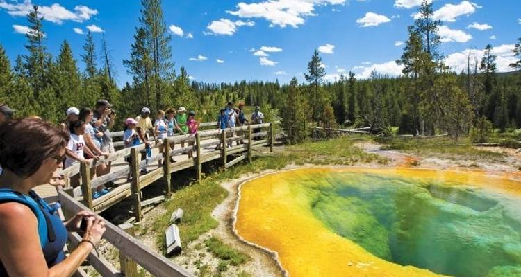 - Tag 1 Treffen Sie Ihre Gruppe in Bozeman, West Yellowstone Ropes Course und erkunden Sie den Yellowstone National Park