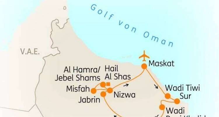 - Tag 1 Flug in das Sultanat Oman