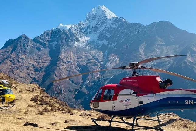- Hubschrauberflug zurück nach Pokhara mit Bergblick