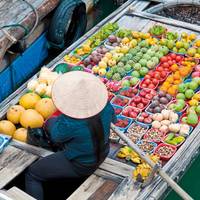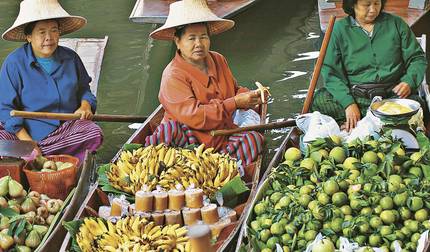 - Einkaufen auf dem lebhaften Markt Damnoen Saduak