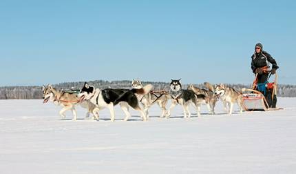 - Unternehmen Sie eine Hundeschlittenfahrt im Schnee