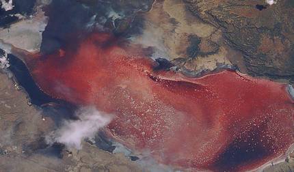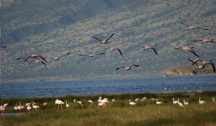 - Beobachten Sie Flamingos am alkalischen Lake Natron