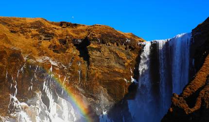 - Regenbogen am Skógafoss Wasserfall sehen