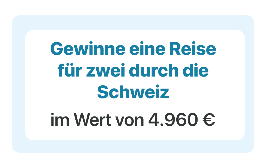 Melde dich bis zum 31. März 2026 an und gewinne eine 10-tägige Reise durch die Schweiz für zwei Personen! (exkl. Flüge)